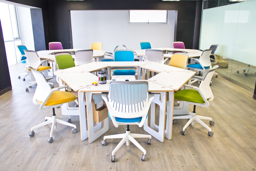 A modular desk was designed, ideal for teamwork. It was decided to use MDF and the assembly does not require screws. The assembly is easy and intuitive, which allows easy transportation and storage.